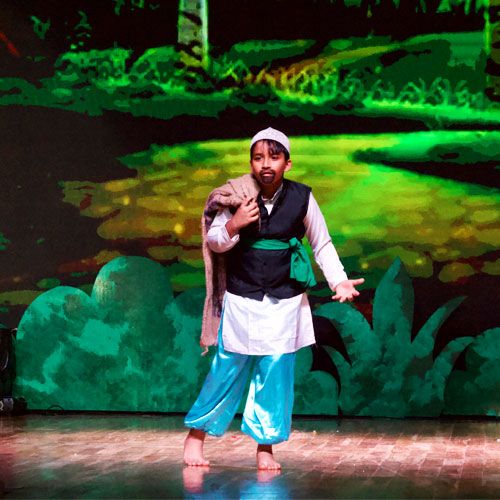 Drama in some form is found in almost every society, primitive and civilized, and has served a wide variety of functions in the society. Drama Club is designed for students interested in learning more about the aspects of theatre. This includes learning stage craft, working on acting skills, set building, costumes design and makeup. In contemporary drama education, there is no prescribed or definite list of elements of drama. However, these are some of the key elements on which we emphasise and enable the students of our school to learn the art of theatrics and drama.