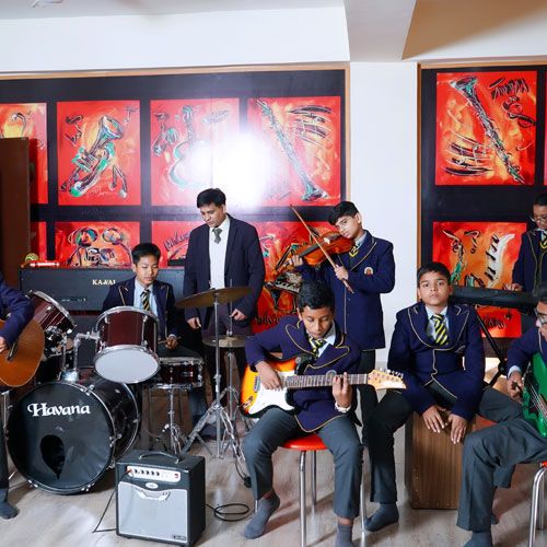 Music is the language of the soul. The school conducts the Music Club with the objective of encouraging musical talent among students. The club has emerged as an important platform for students to showcase their talent of vocal and instrumental music. The club presents musical performances during the Assembly and also on special occasions. By inculcating love for music among students, the school provides them with an opportunity to participate in various competitions and musical programs at different levels.